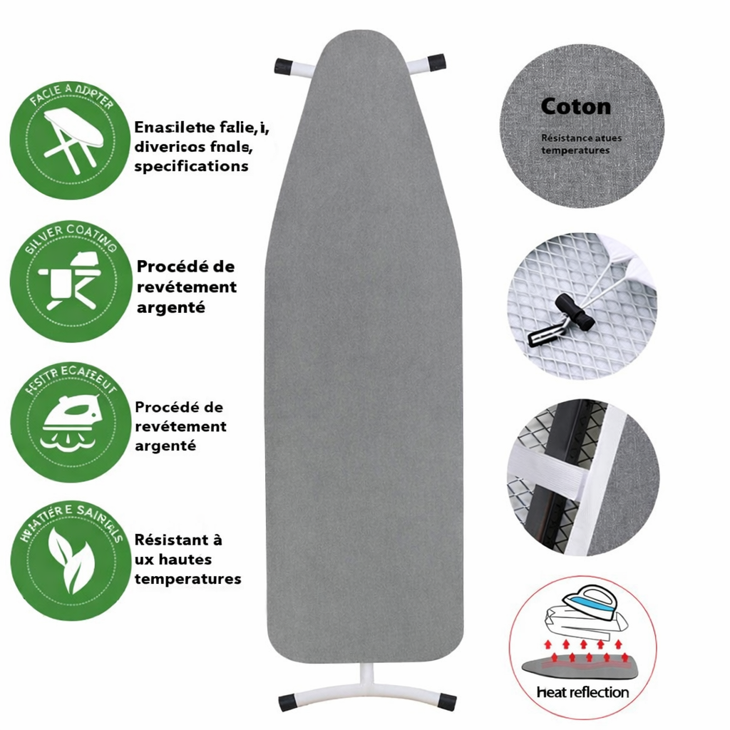 Housse de table à repasser en coton élastique avec bordure en tissu recouvert de caoutchouc