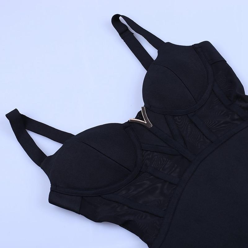 Robe de soirée sexy à bretelles, avec empiècement en tulle. Matière effet satiné