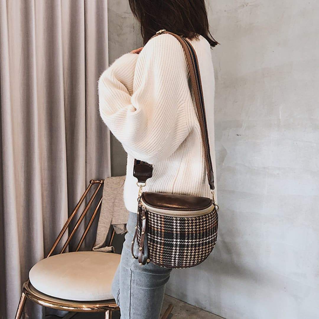 Emportez tout ce dont vous avez besoin dans ce joli sac à bandoulière fait de laine tissée et similicuir. Il apporte un style vintage indémodable à votre tenue et sa forme originale ne laissera personne indifférent !