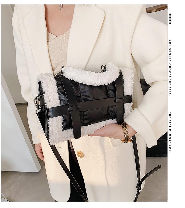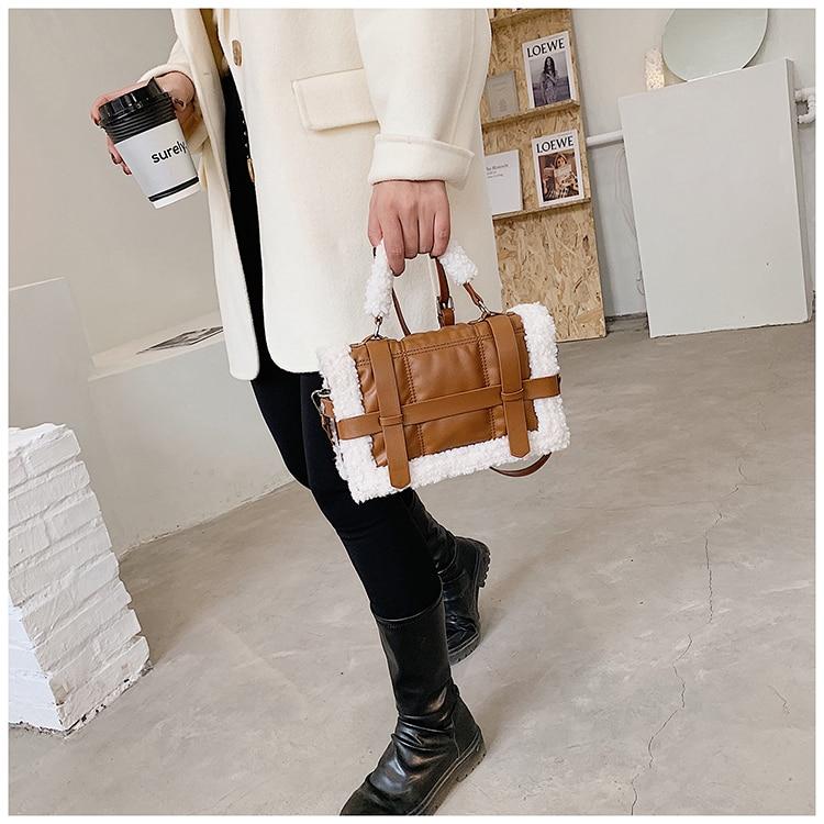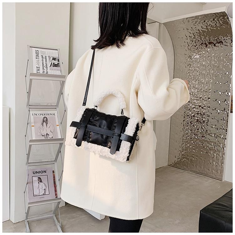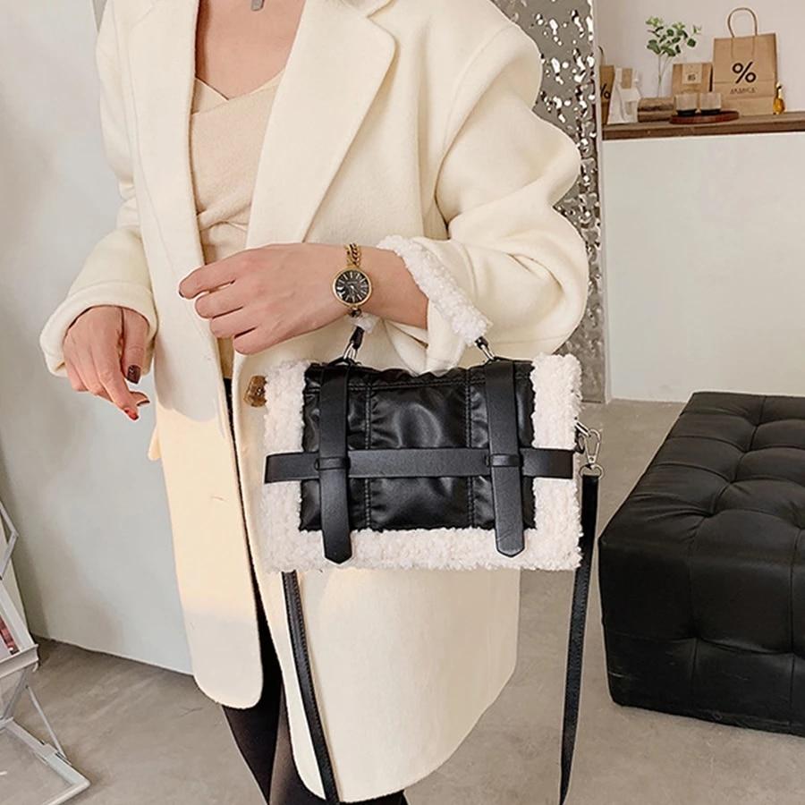 Notre joli sac à bandoulière en similicuir et fausse laine de mouton vous accompagnera partout pour réchauffer votre look.