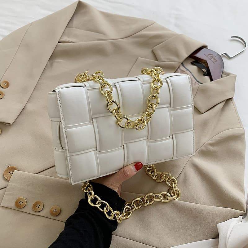 Optez pour un sac matelassé à porter à la main, à l'épaule ou en bandoulière. Les grosses chaînes dorées et sa fermeture à rabat en font le sac original et un incontournable de saison.
