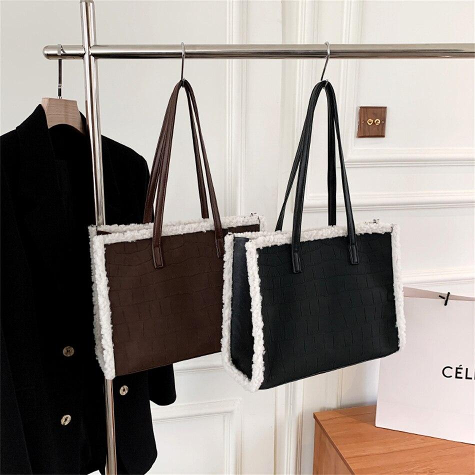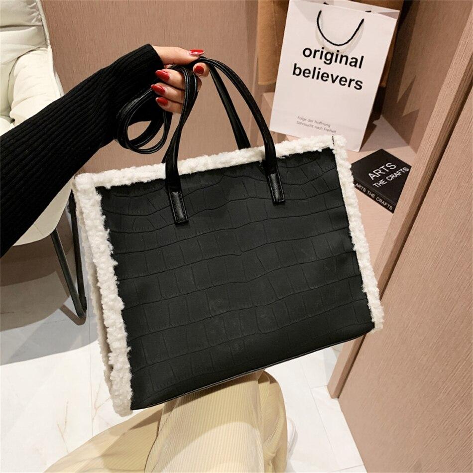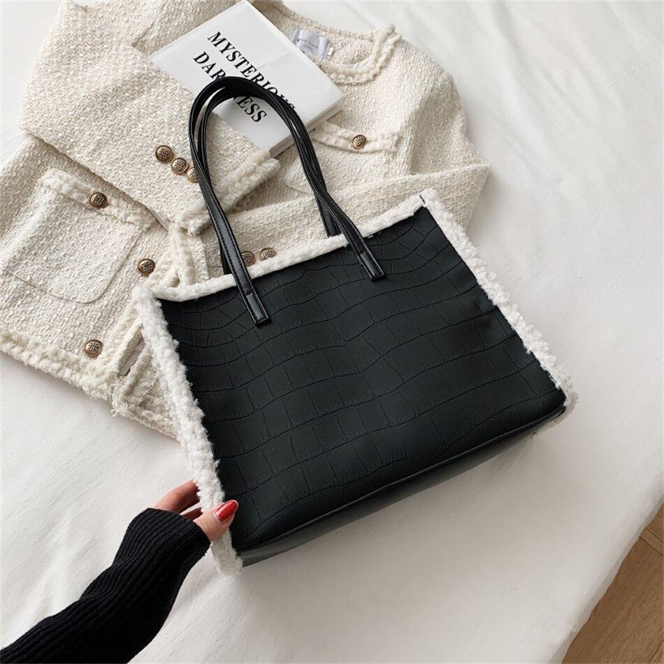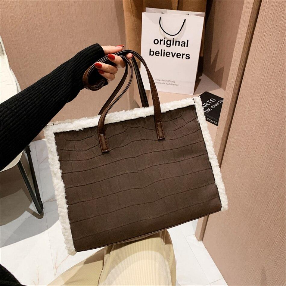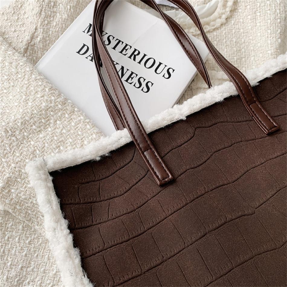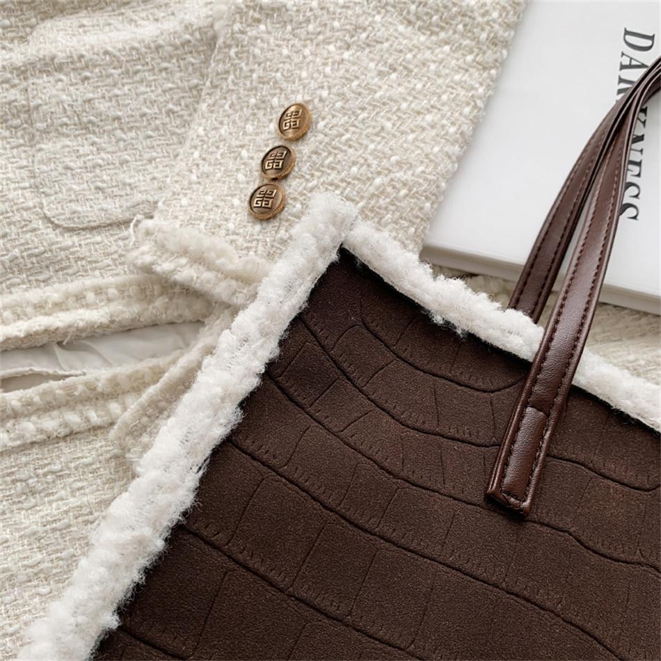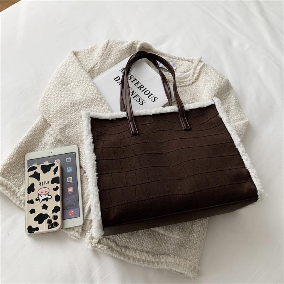 Ses bords en moumoute (fausse laine de mouton) et sa matière suèdine lui donnent une touche chaleureuse, tandis que sa grande taille le rend parfait pour transporter tous vos essentiels. Que vous alliez en ville, au travail ou que vous fassiez simplement des courses, ce sac vous gardera à coup sûr chic !